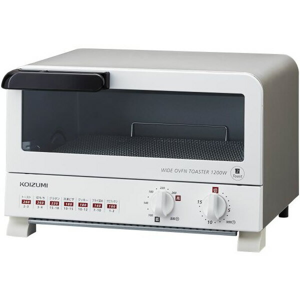 KOIZUMI KOS-1204/W ホワイト 小泉成器 オーブントースター 【製品仕様】 品番 KOS-1204 [KOS1204] サイズ 本体サイズ:約幅350×奥行276×高さ227 mm 庫内サイズ:約幅310×奥行215×高さ92 mm 本体質量 約 2.8 kg(本体のみ) コードの長さ 約 1.0 m 消費電力 1200W ・温度調節:100〜260℃ ・タイマー:15分 ・トースト枚数:山型2枚 付属品 トレー、焼き網、取扱説明書、保証書 仕様 ハイパワー1200W。