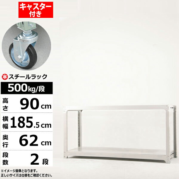 【クーポンあり】スチールラック キャスター付き 幅180 奥行60 高さ90 2段 500kg/段業務用 スチール棚 ボルトレス 中量棚 ラック 棚 移動棚キャスターラック キャスター付ラック 収納ラック 送料無料